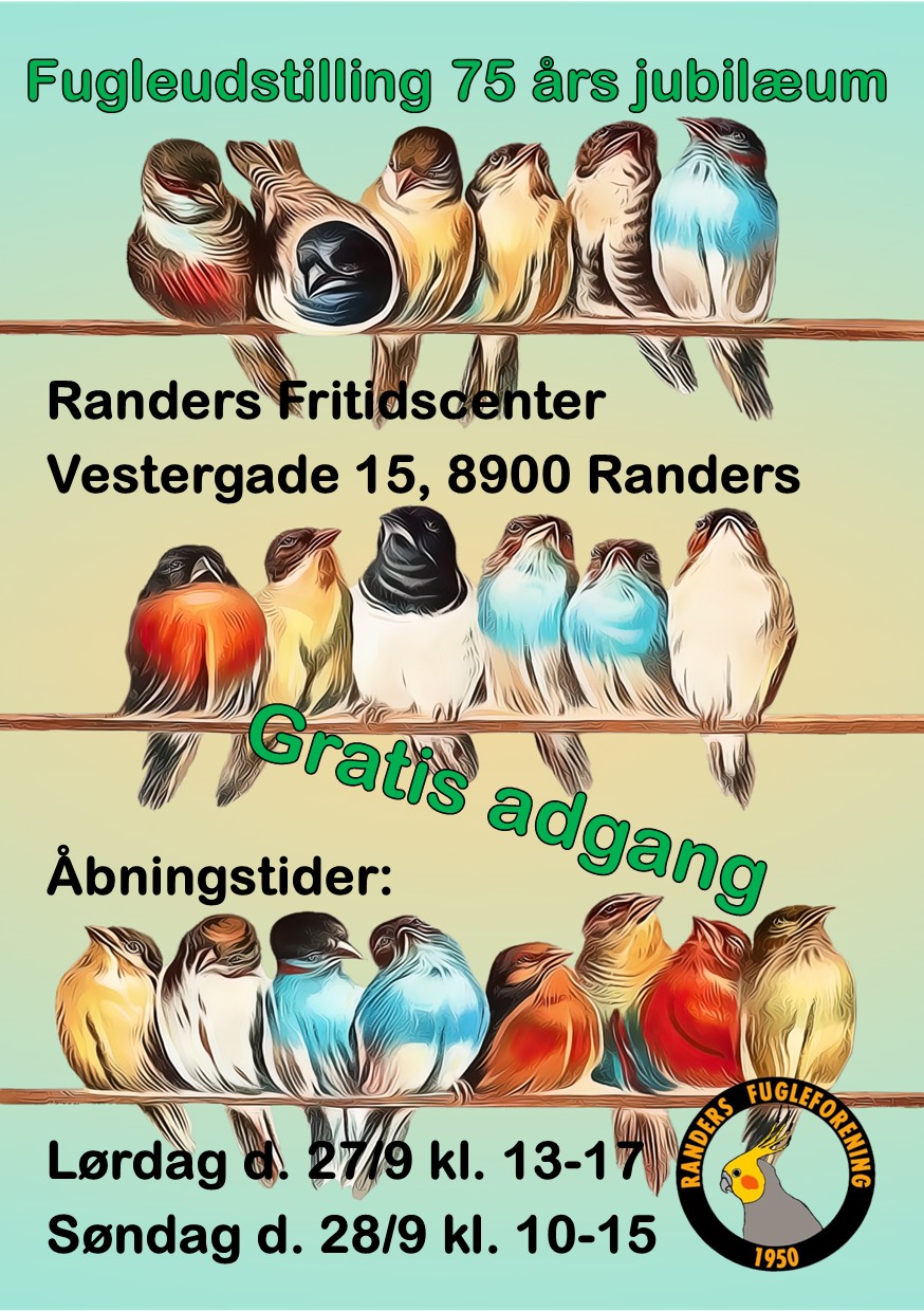 Posted on by « Alle Begivenheder Denne begivenhed er allerede afholdt. Fugleudstilling 27/09/2025 @ 13:00 - 17:00 Gratis « DM 2025 – Agapornis/Forpusdag KANARIE UDSTILLING » Jubilæumsudstilling i Randers Fugleforening med ekstra mange fugle at se på. Lørdag d. 27/9 kl. 13:00-17:00 Søndag d. 28/9 kl. 10:00-15:00 Tilføj til kalender Google kalender iCalendar Outlook 365 Outlook Live Detaljer Dato: 27/09/2025 Tidspunkt: 13:00 - 17:00 Pris: Gratis Arrangør Randers fugleforening Telefon 21394299 E-mail kontakt@randersfugleforening.dk Se Arrangør hjemmeside Sted Randers fritidscenter Vestergade 15 Randers, 8900 + Google Maps Se Sted hjemmeside